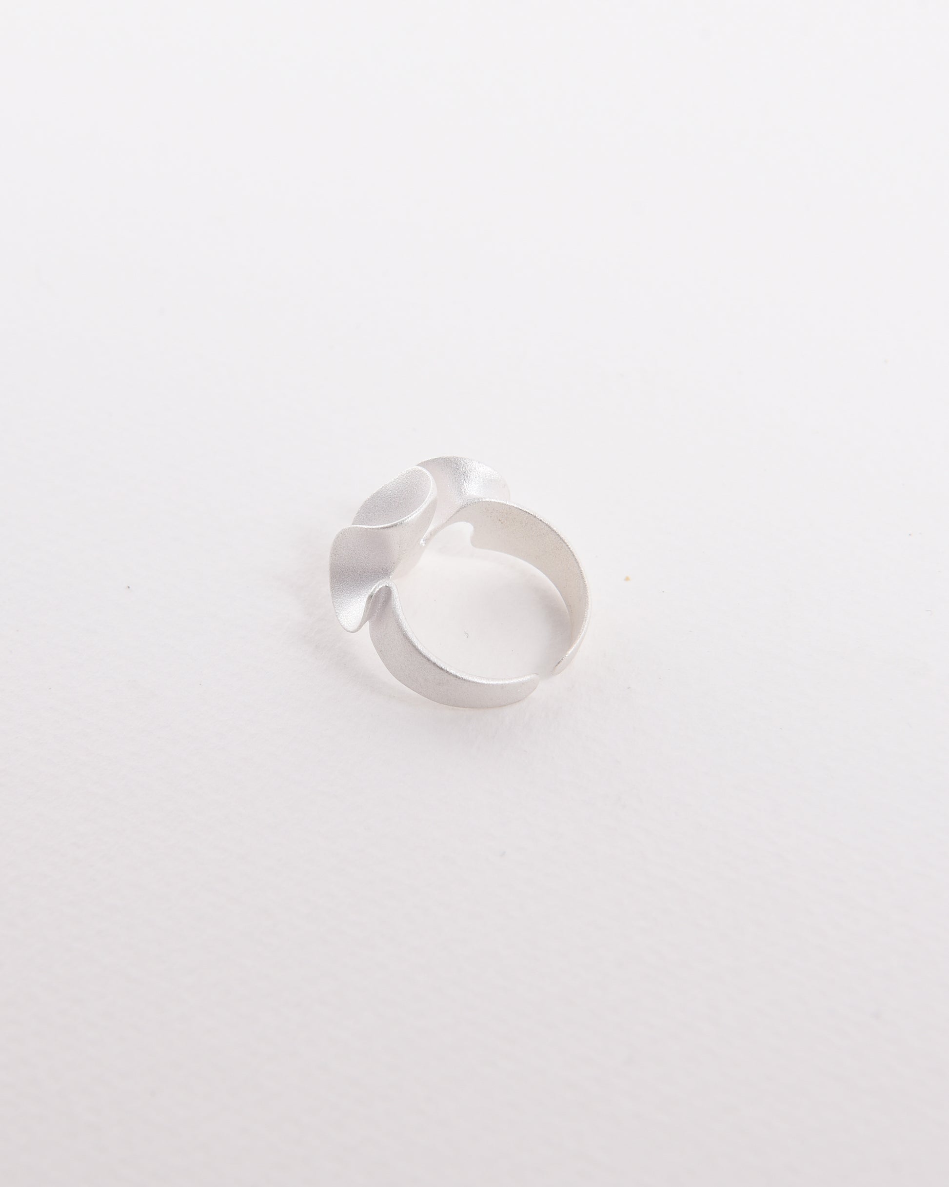 Ruffle Ring flows with gentle curves that evoke the softness of fabric or petals unfolding. Its matte finish and sculptural form bring a quiet sophistication to everyday wear.